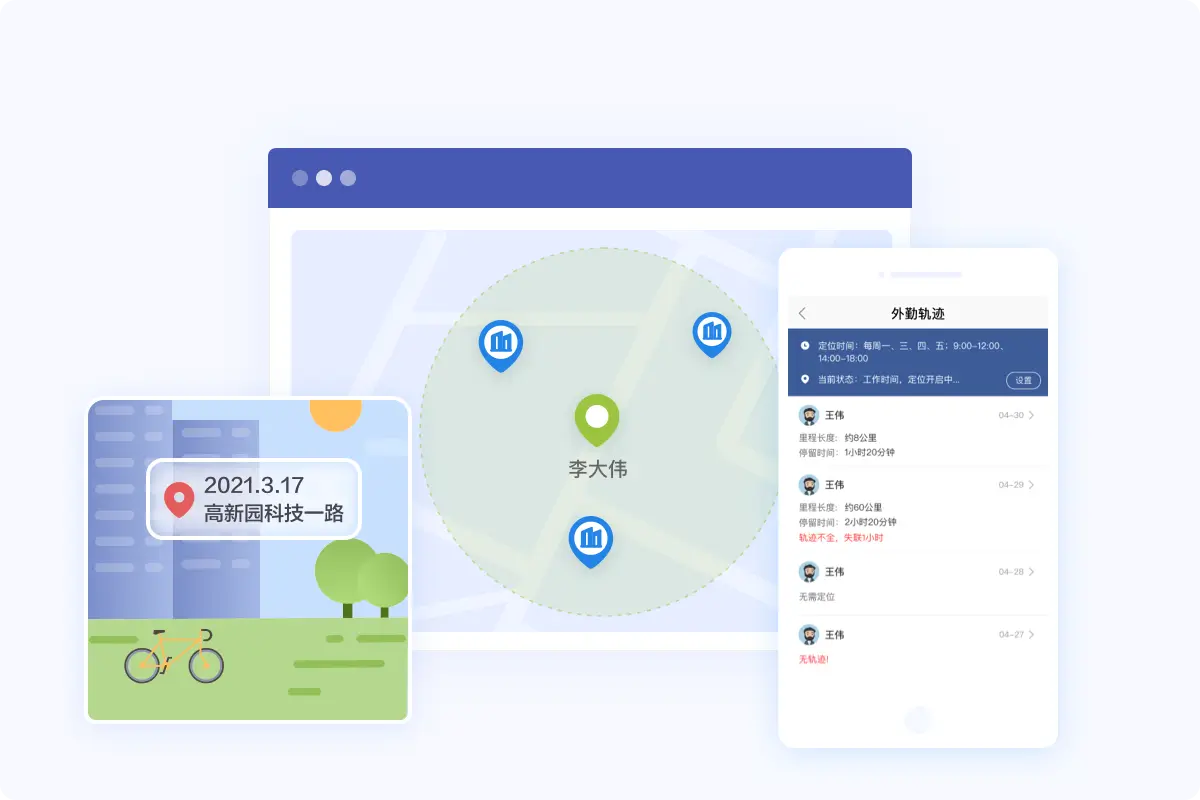 员工的定位、轨迹等业务记录实时上报,数据真实有效,考核员工有据可依