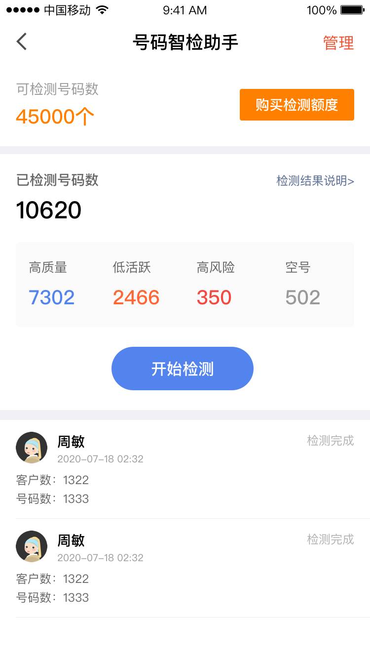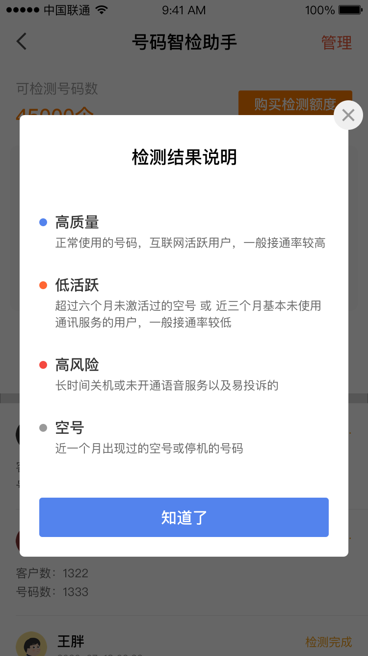 智能检测号码质量和活跃度,快速识别空号错号、接通意愿低与高投诉风险等号码