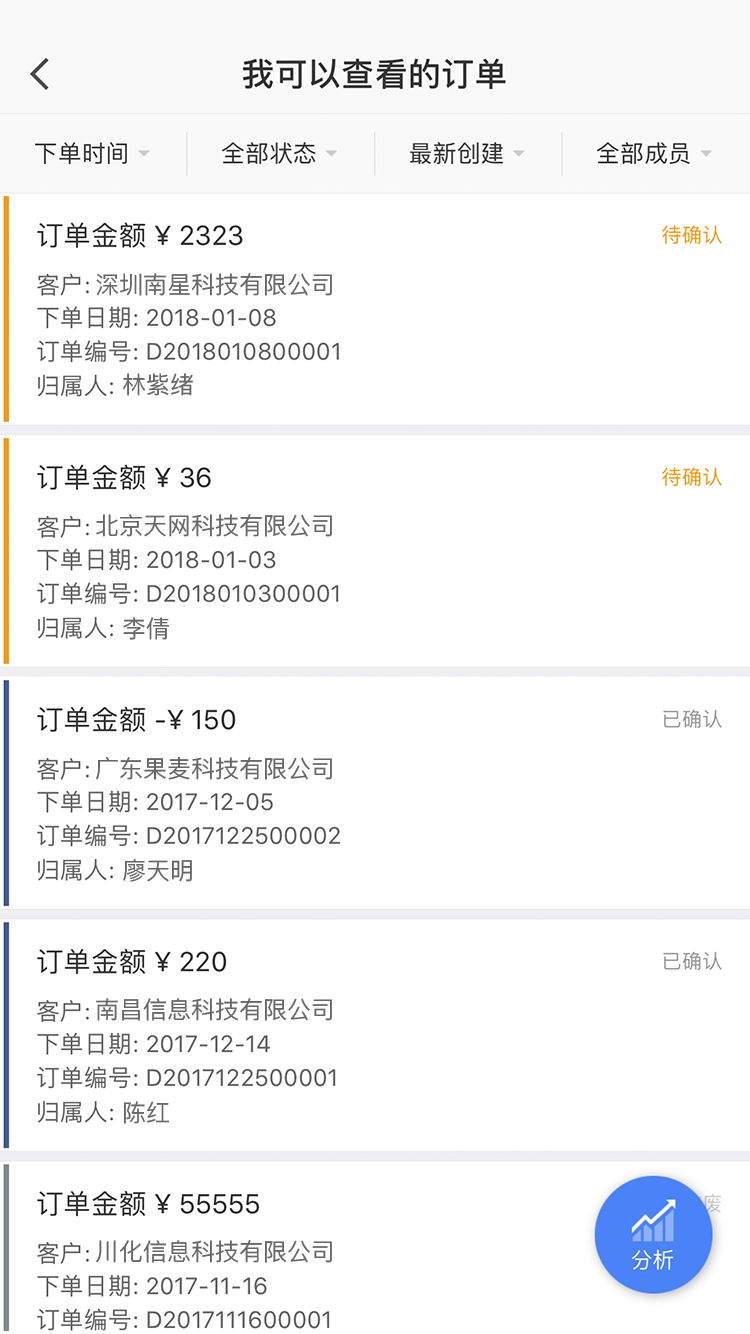 客户成单信息,随时记录